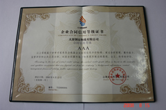 2008年8月12日,山西省信用評估有限公司對我公司的合同信用狀況進(jìn)行評價,確定我公司2007年度合同信用綜合評價級別為AAA級,并頒發(fā)《企業(yè)合同信用等級證書》。