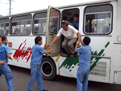 2009年6月16日上午,我公司客運(yùn)分公司組織客車(chē)司機(jī)進(jìn)行火災(zāi)事故應(yīng)急演練。