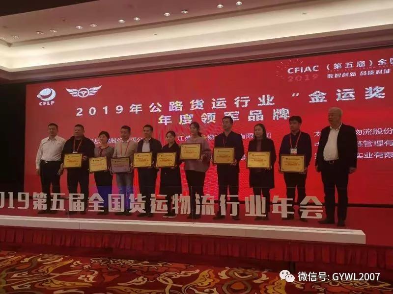 公司榮獲2019年公路貨運行業(yè)“金運獎”年度領(lǐng)軍品牌榮譽